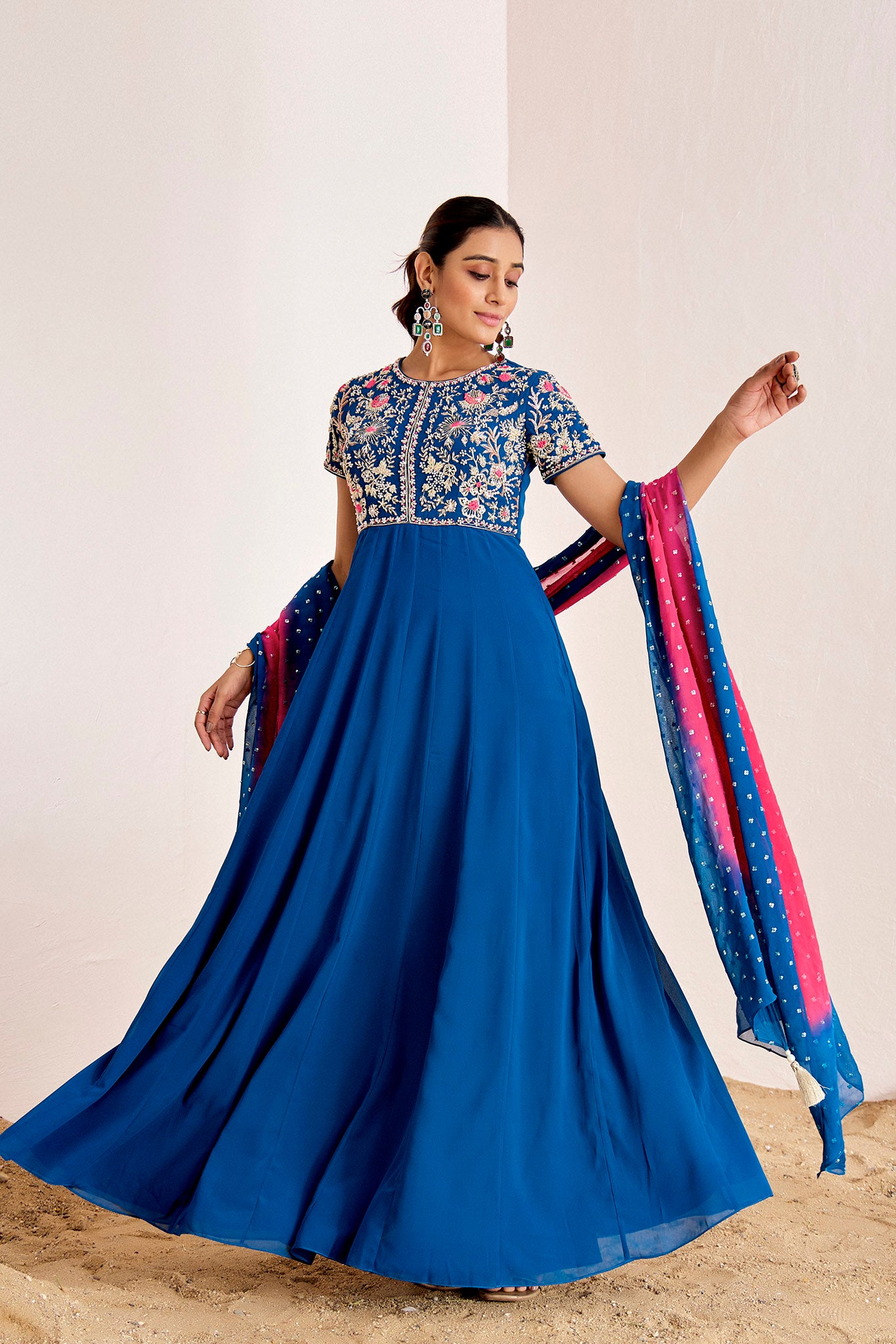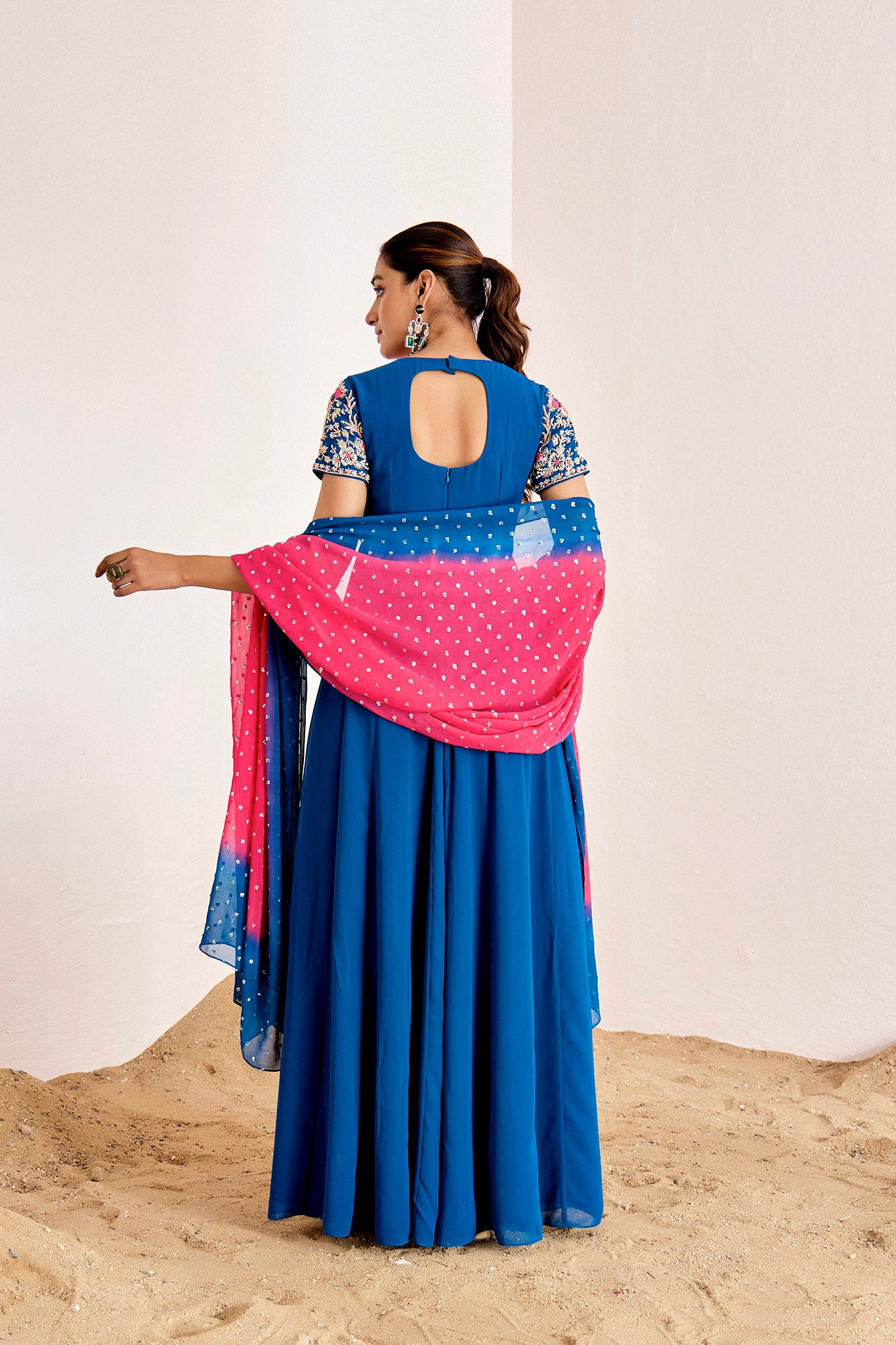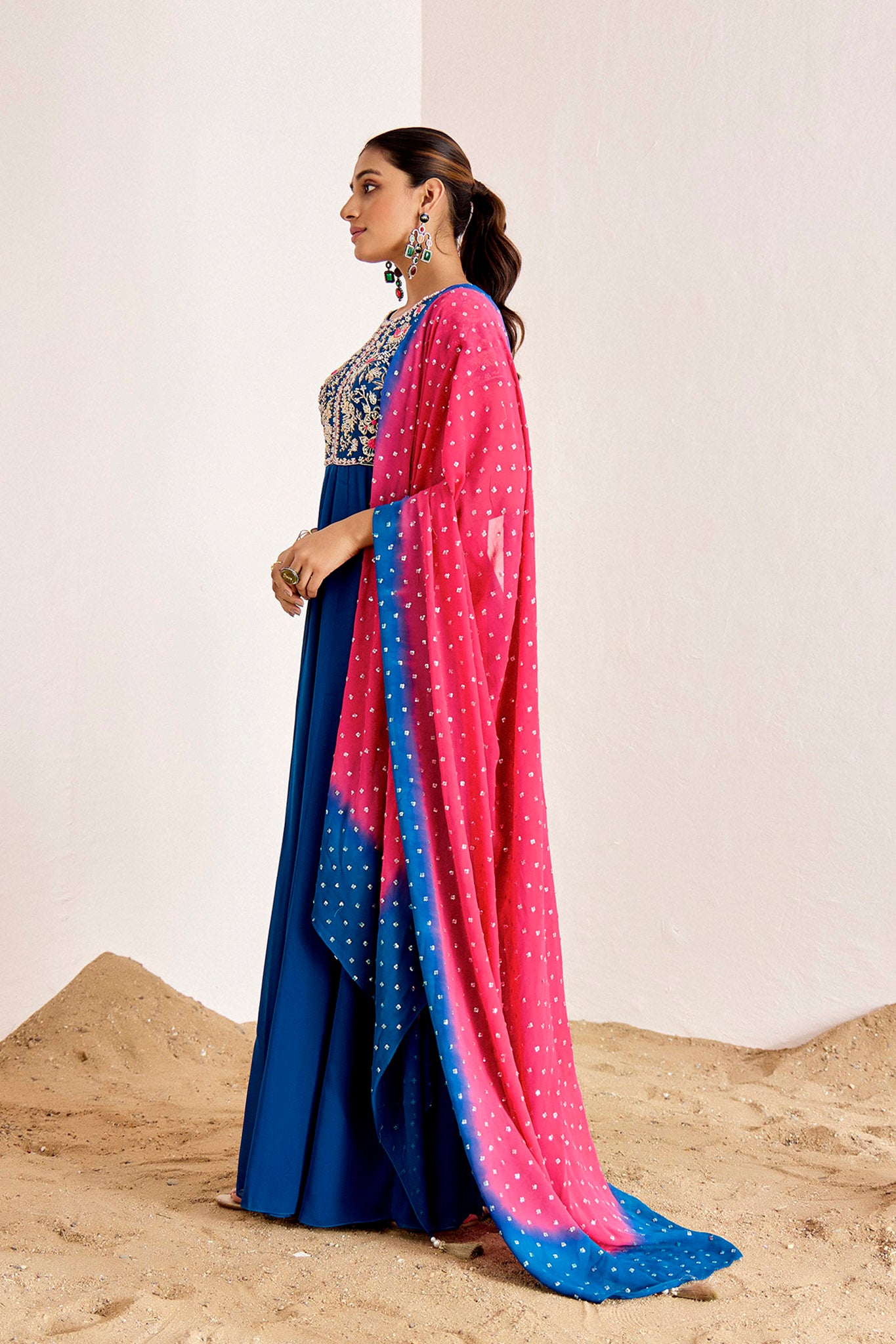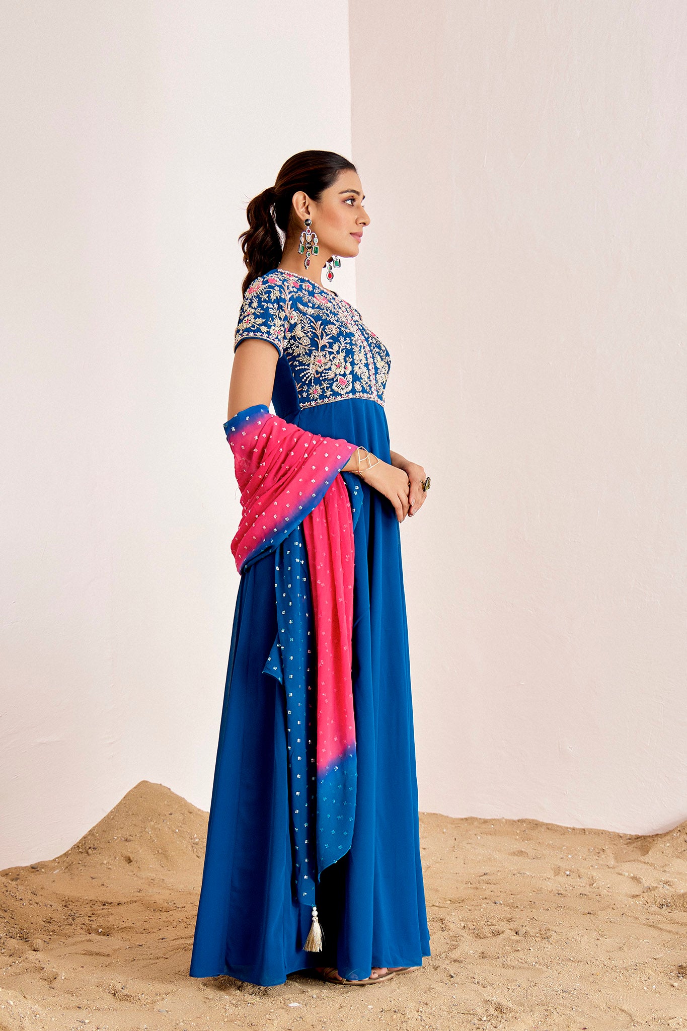 TEAL ANARKALI WITH OMBRE DUPATTA