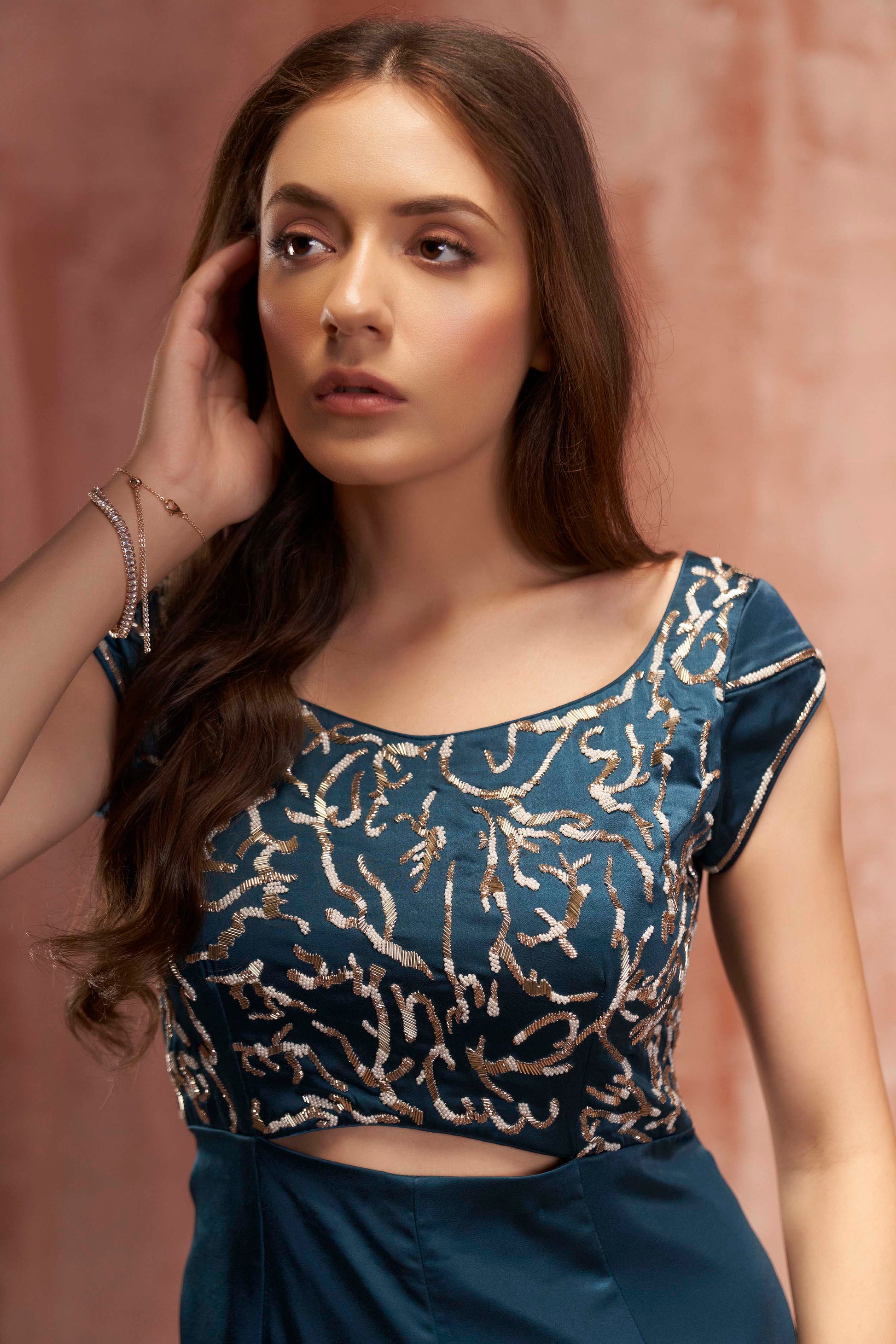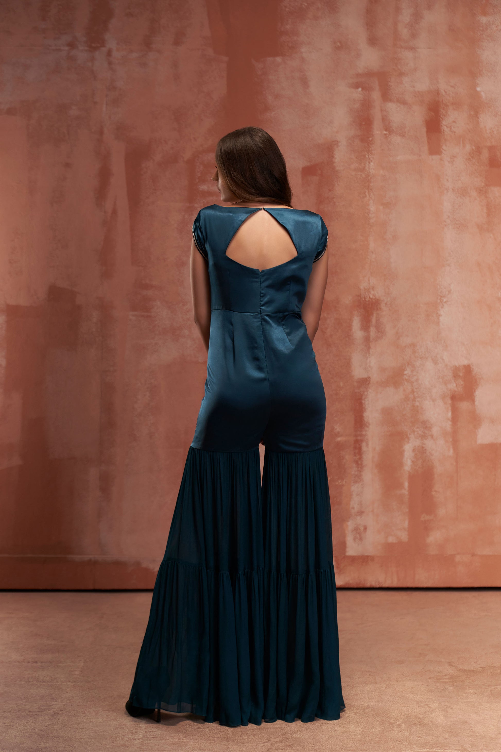 Teal Blue Embroidered Jumpsuit