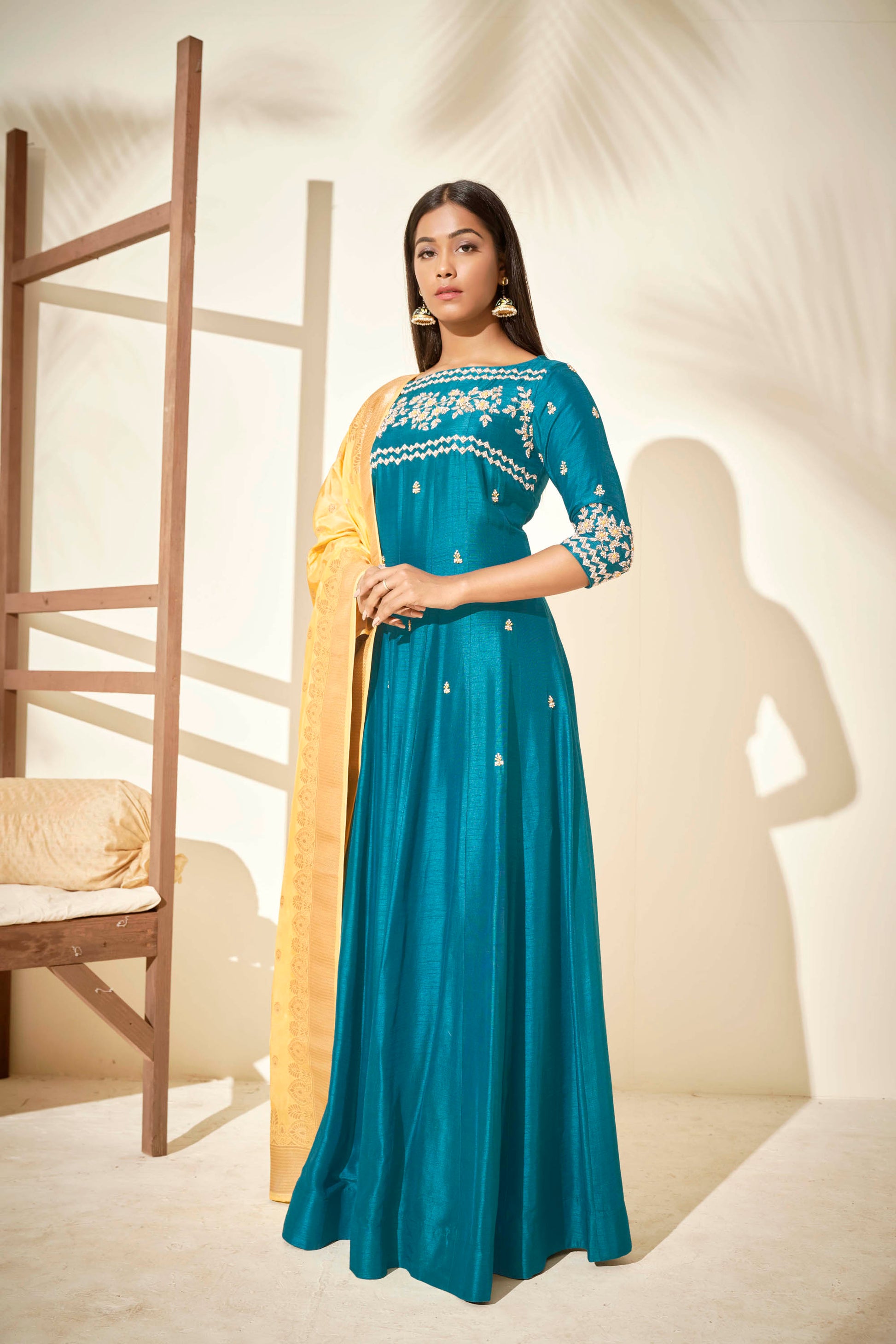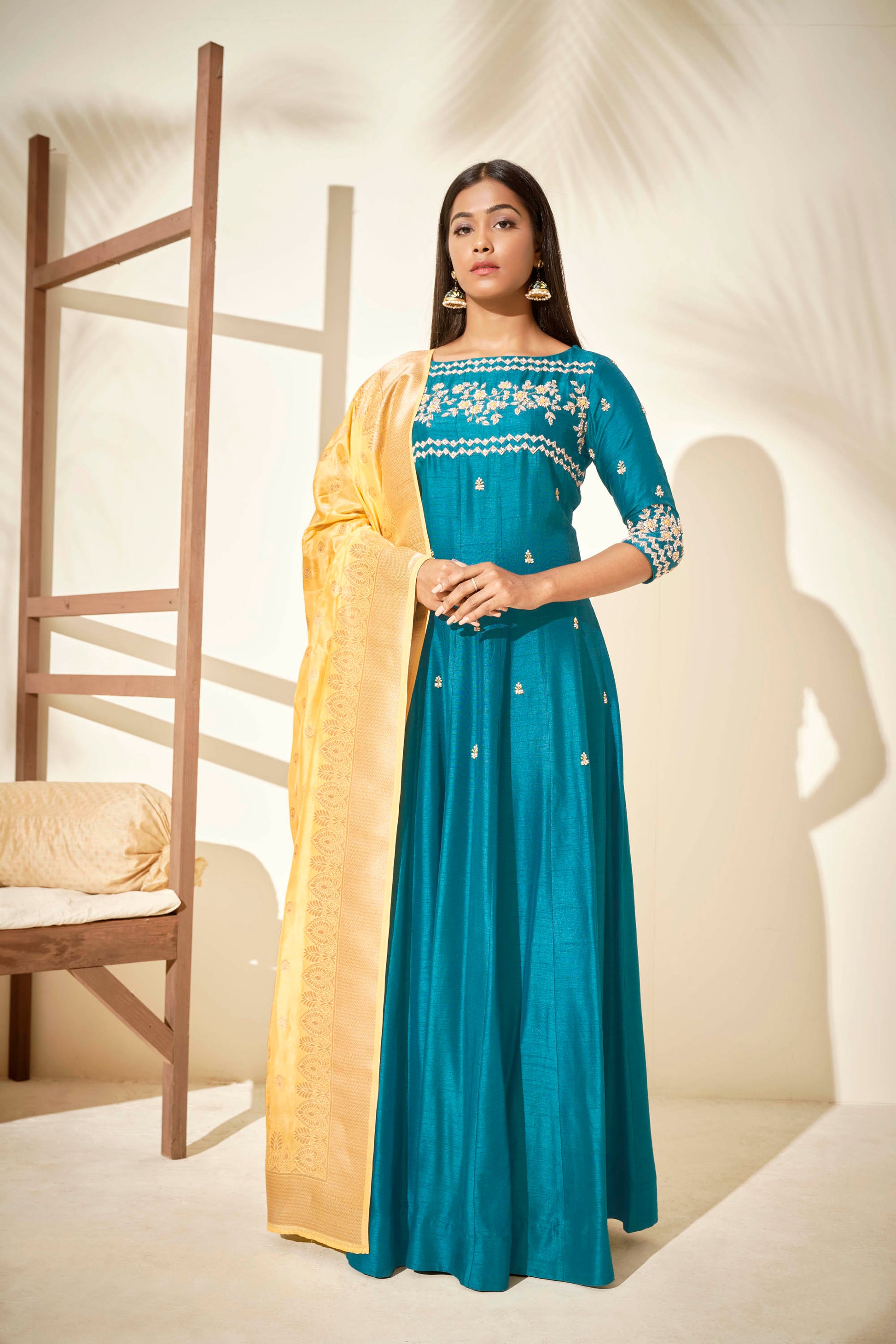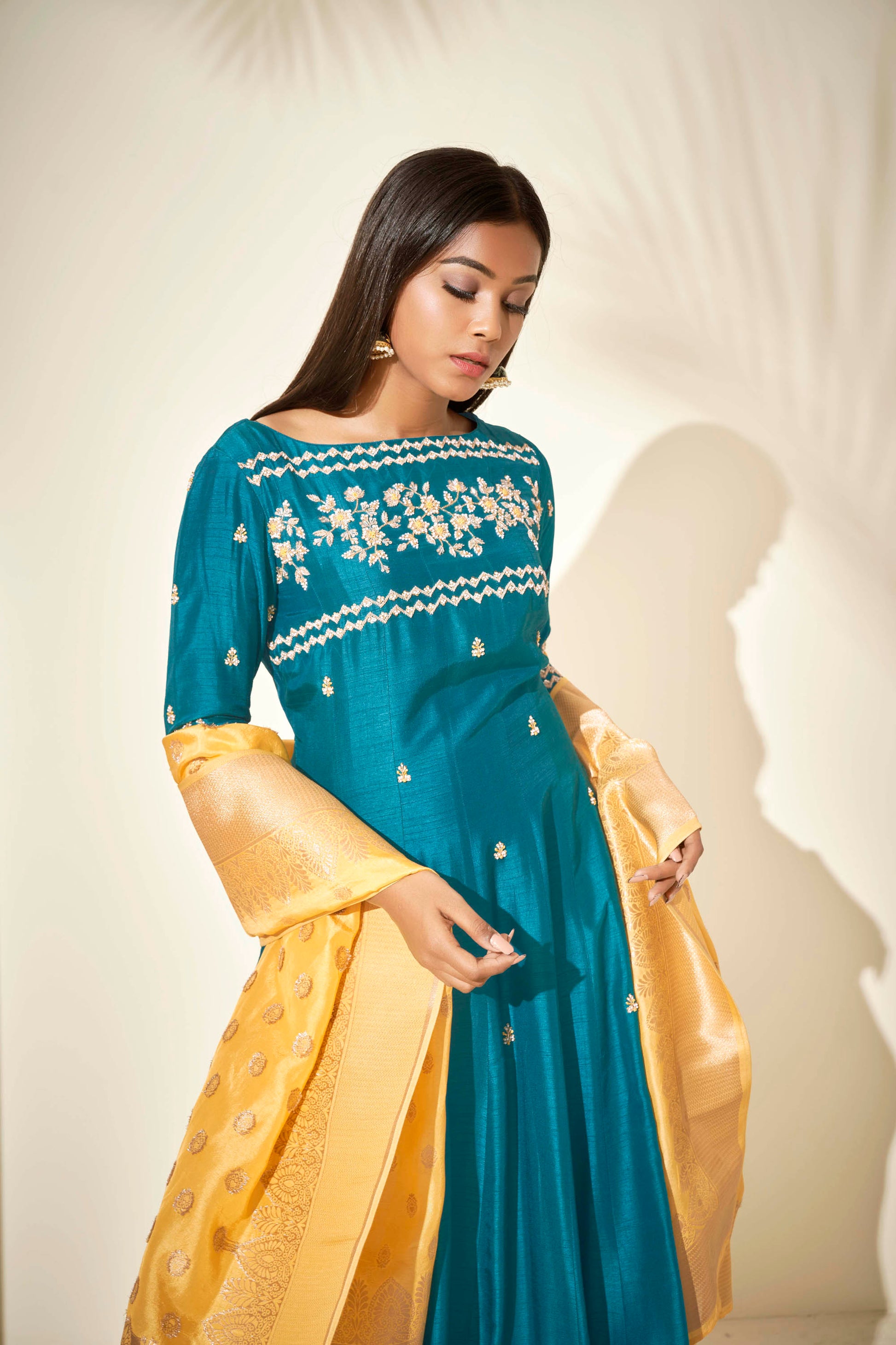 Handcrafted Anarkali paired with Banarasee dupatta.