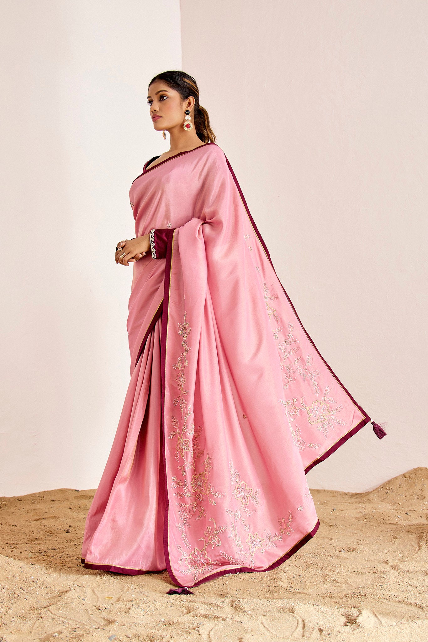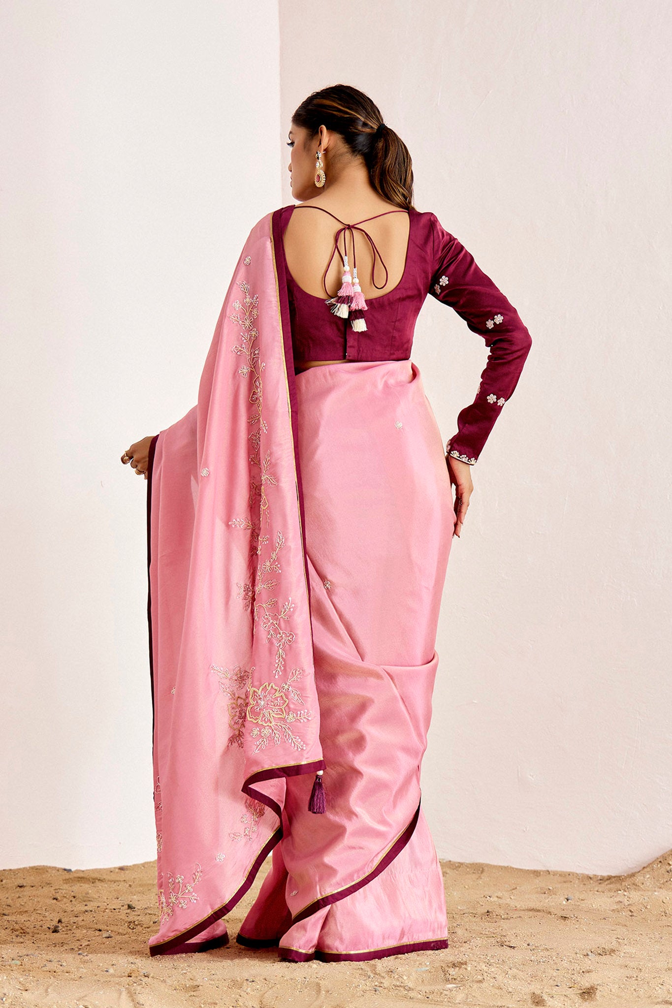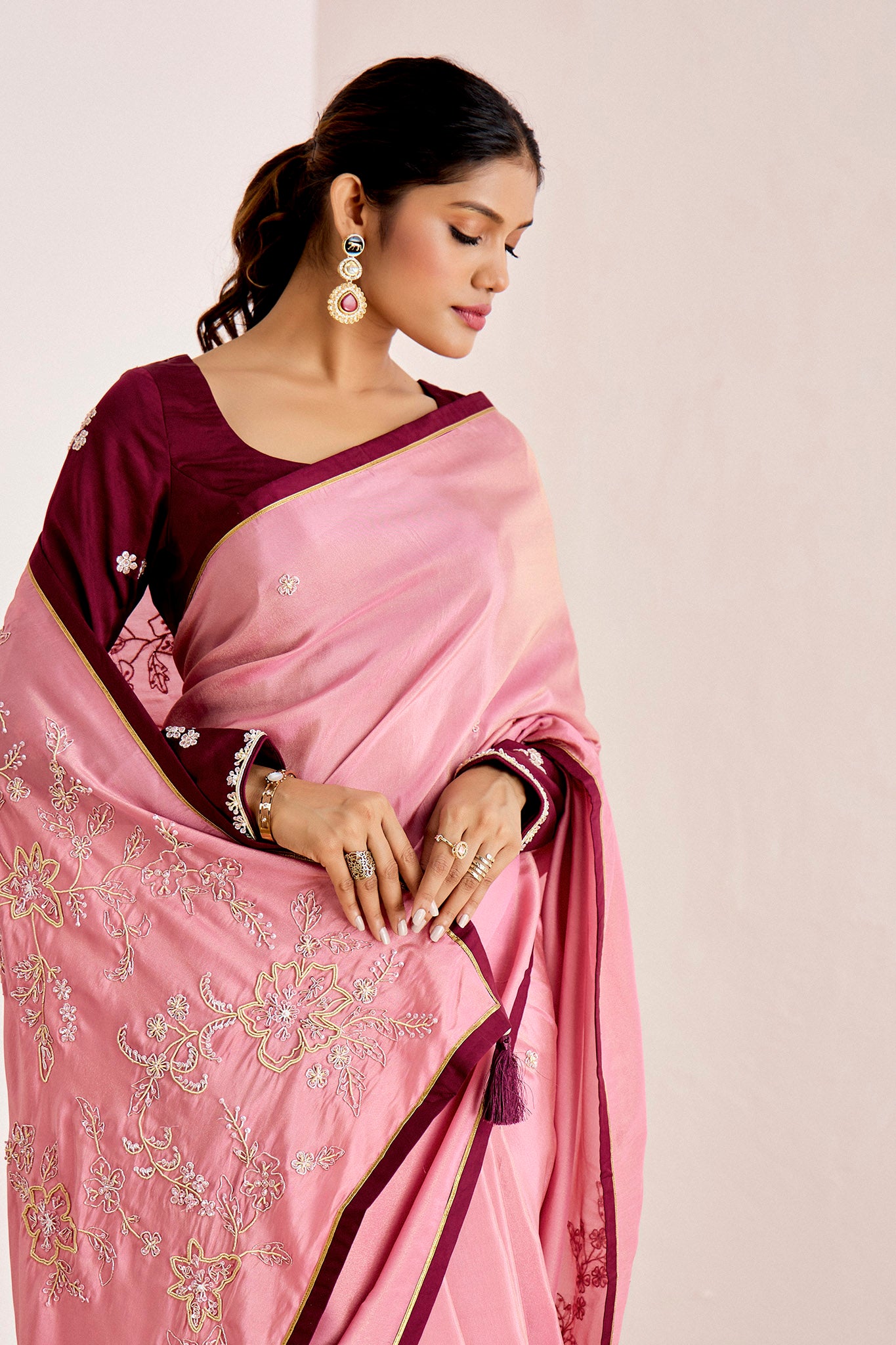 Shimmer saree with hand embroidered pallu and border paired with blouse